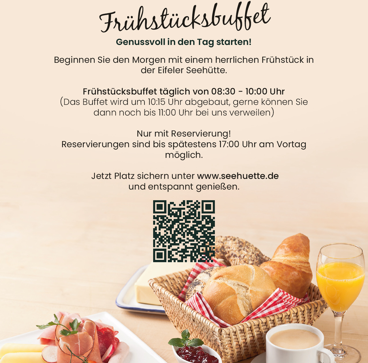 Beginnen Sie den Morgen mit einem herrlichen Frühstück in der Eifeler Seehütte.